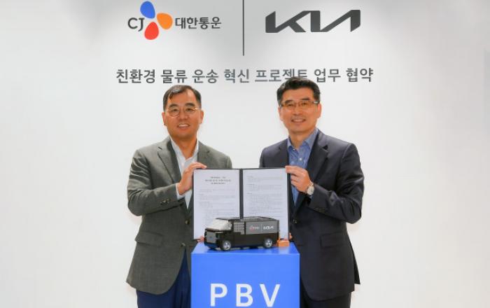 기아가 CJ대한통운과 함께 친환경 물류에 최적화한 목적 기반 모빌리티(PBV·Purpose Built Vehicle) 개발 및 이와 연계한 다양한 솔루션의 사업화를 위한 협력에 나선다고 21일 밝혔다. 기아는 21일 양재동 본사에서 기아 송호성 사장, CJ대한통운 강신
