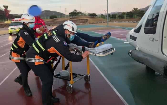 #. 지난 2월 용인시 한 공장에서 기계에 작업자의 신체 일부가 눌렸다는 119 신고가 접수됐다. 사고장소와 병원과는 30km 이상 떨어져 있어 의료진과 구조대가 차량으로 공장에 이동하면 중증외상 기준 ‘골든타임’ 1시간을 지키기 어려워 보였다. 이에 도는 아주대학교