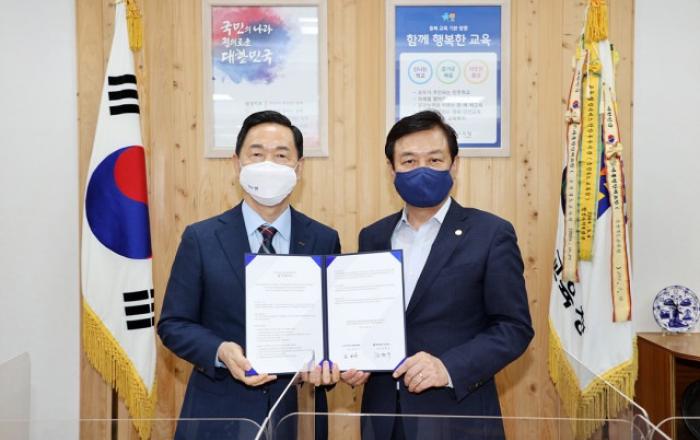 한국교직원공제회가 충청북도교육청과 지정정보처리장치인 ‘교육기관전자조달시스템 S2B’(이하 S2B)를 통해 ‘지역소상공인의 공공조달시장 판로 확대 및 공공구매 활성화를 위한 업무협약(MOU)’을 체결했다고 2일 밝혔다.▲ 왼쪽부터 김상곤 한국교직원공제회 이사장과 김병우