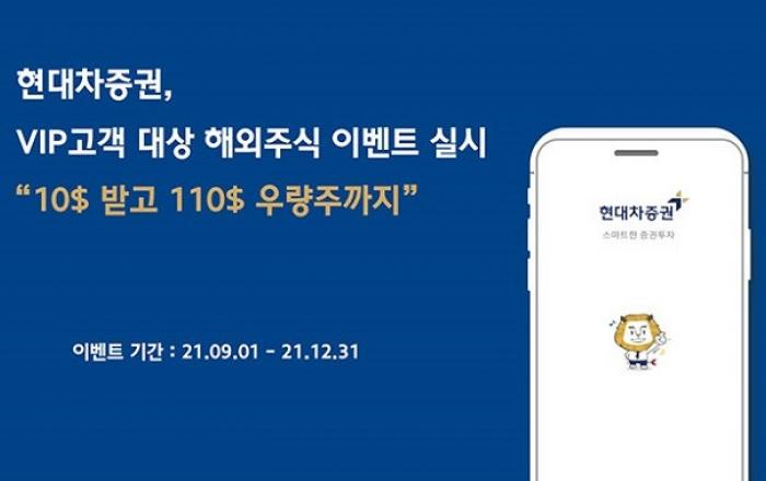 현대차증권이 VIP 고객 대상으로 해외주식 이벤트를 시행한다고 31일 밝혔다.이번 해외주식 이벤트는 10$ 제공 및 110$ 상당의 미국 우량주 1주 지급 이벤트로 9월 1일부터 12월 31일까지(4개월 간) 진행된다.첫 번째 ‘10$ 제공 이벤트’는 이벤트 기간 내
