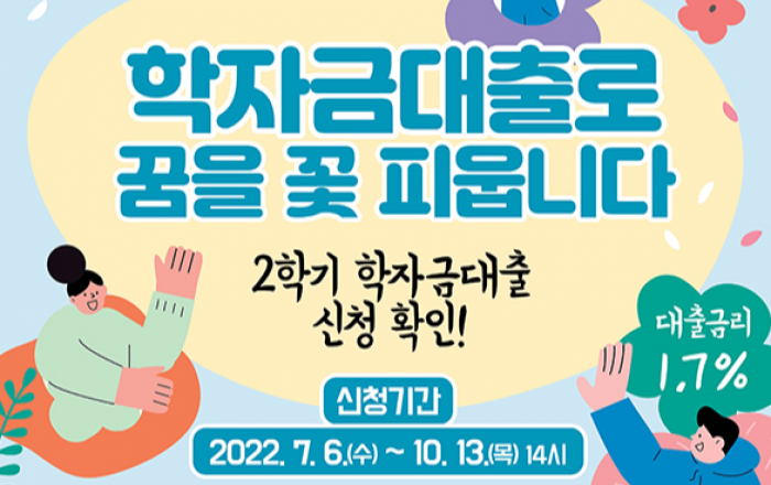 교육부와 한국장학재단은 2022학년도 2학기 학자금 대출금리를 1.7%로 동결하고 6일부터 신청을 받는다고 4일 밝혔다. 올해 2학기 학자금 대출 금리는 인플레이션 우려로 인한 연속적인 기준금리 인상에도 불구하고 1학기와 동일하게 1.7%로 동결하기로 했다.
