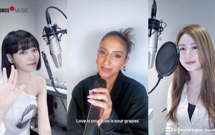 르세라핌(LE SSERAFIM)과 싱어송라이터 아비어(Abir)의 국경을 초월한 컬래버레이션이 성사됐다. 지난 4일 오후 10시 르세라핌의 공식 유튜브 채널에 ‘LE SSERAFIM X ABIR - ‘Sour Grapes’’ 영상이 게재됐다. 영상에는 김채원, 허윤진과