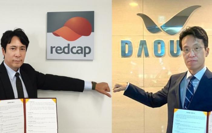 레드캡투어가 25일 다우기술과 출장관리 서비스 연동을 위한 전략적 업무 협약(MOU)을 체결했다고 26일 밝혔다.▲ 왼쪽부터 레드캡투어 이준호 DT²사업부장과 다우기술 정종철 BA사업기획부장이 출장관리 서비스 연동을 위한 업무 제휴 협약식을 화상으로 체결한 후 기념촬영