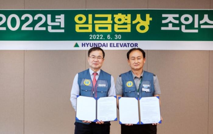 현대엘리베이터가 2022년 임금협상을 조기 타결했다. 현대엘리베이터 노사 양측은 임금협상 개시 보름만인 6월 30일 역대 최고 찬성률(83.21%)로 합의했다고 1일 밝혔다. 국내 주요 승강기 기업 중 가장 빠른 협상 결과다. 이번 협상을 통해 현대엘리베이터 노동조합과