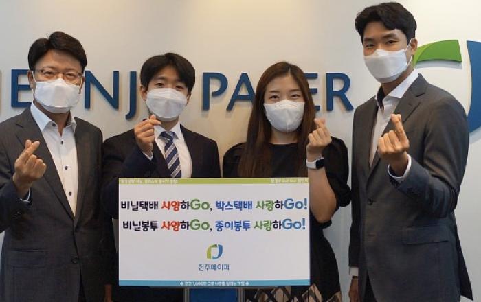 골판지 원지 전문 기업 전주페이퍼는 환경부가 주관하는 탈(脫) 플라스틱 실천 운동 ‘고고챌린지(Go Go Challenge)’에 동참한다고 밝혔다.전주페이퍼는 ‘비닐택배 사양하Go, 박스택배 사랑하Go! 비닐봉투 사양하Go, 종이봉투 사랑하Go!’를 슬로건으로 정하고,