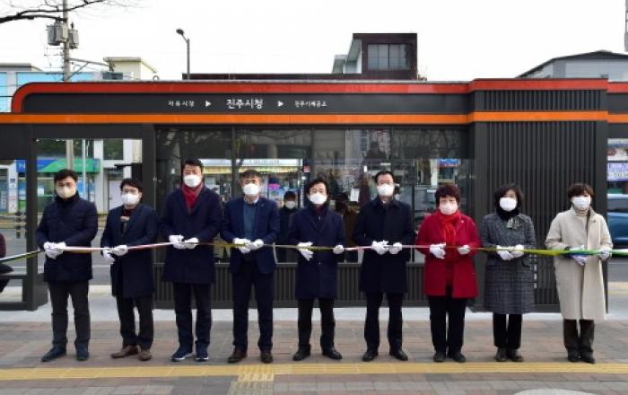 경남 진주시는 22일 시청 앞 스마트 버스정류장에서 스마트 버스정류장, 스마트 폴, 자율항행 드론 사업을 마무리하고 준공식을 개최했다.이날 준공식은 코로나의 확산 및 선거기간 등을 감안해 민간인을 제외하고 진주시장 및 진주시의회 의원, 관계기관 및 공사관계자 등 20여