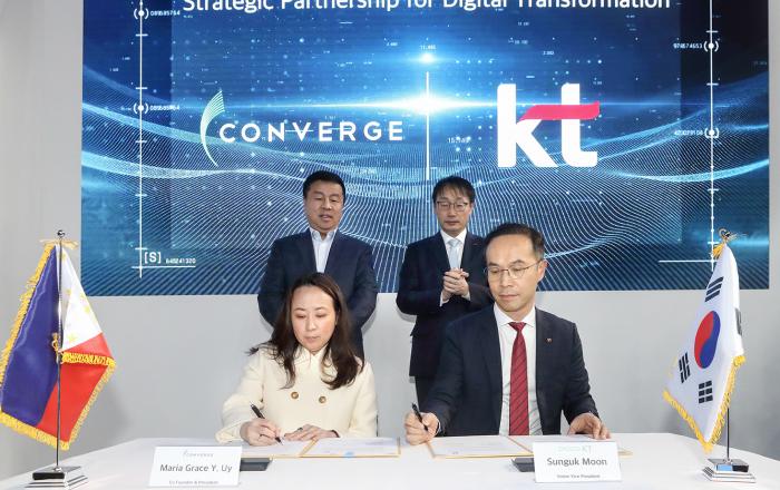 KT가 27일 MWC 2023 스페인 현지에서 필리핀 인터넷 서비스 제공업체(ISP, Internet Service Provider) ‘컨버지 ICT 솔루션즈(Converge ICT Solutions INC., 이하 컨버지)’와 필리핀 DX 사업개발 협력을