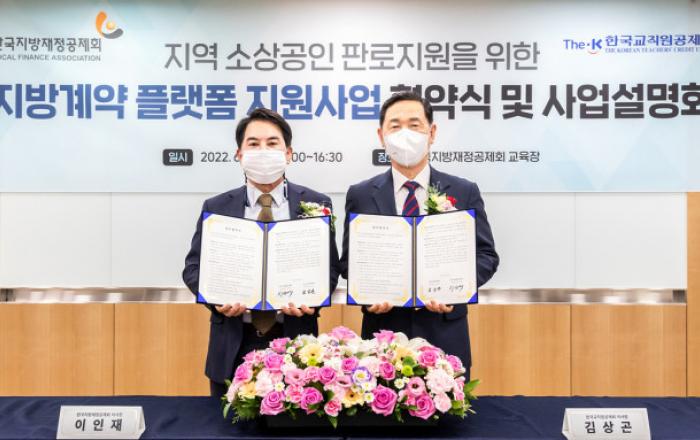 한국교직원공제회가 한국지방재정공제회와 지역 소상공인 판로 지원을 위한 ‘지방계약 플랫폼 지원사업 업무 협약(MOU)’을 체결했다고 13일 밝혔다. 이번 업무 협약은 교직원공제회가 운영하는 지정정보처리장치 S2B를 통해 지방자치단체가 편리하게 이용할 수 있는 맞춤형