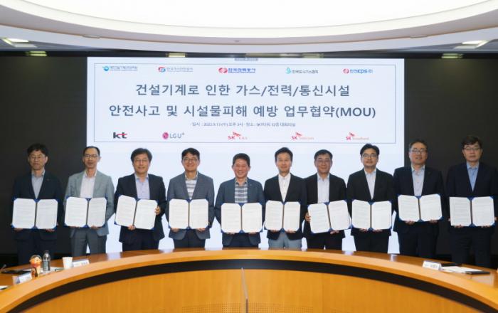 LG유플러스가 대한건설기계안전관리원, 한국가스안전공사한국전력공사, 한국도시가스협회, 한전KPS, SK텔레콤, KT, SK이엔에스, SK브로드밴드와 건설 기계로 인한 가스·전력·통신시설 안전 사고 및 시설물 피해 예방을 위한 다자간 업무 협약을 체결했다고 14일 밝