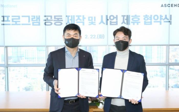 종합 콘텐츠 기업 아센디오가 22일 서울 상암동 SBS 프리즘타워에서 SBS미디어넷과 프로그램 공동제작 및 사업 제휴 협약식을 진행했다고 23일 밝혔다.협약식에는 아센디오 신동철 대표와 SBS미디어넷 이상수 본부장을 비롯한 양측 주요 관계자들이 참석했다. 이번 협약으로