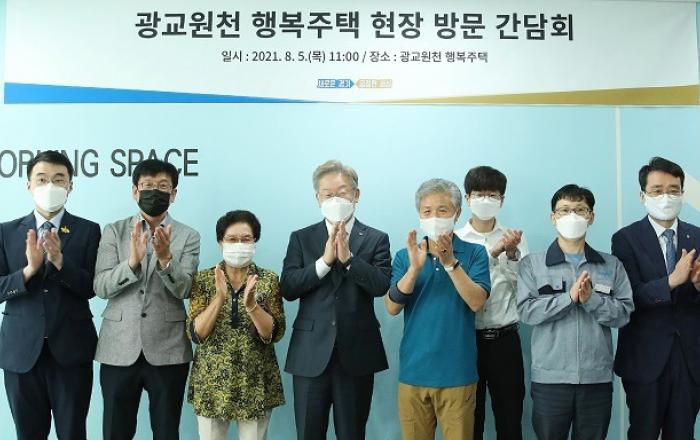 경기도가 폭염에 취약한 고령자 등 주거약자가 거주하는 경기행복주택 205세대를 대상으로 긴급 에어컨 설치에 들어간 가운데 이재명 경기도지사가 에어컨 설치 현장을 찾아 무더위에 지친 입주민을 위로했다.이재명 지사는 5일 수원시 영통구에 위치한 광교원천 경기행복주택을 방문
