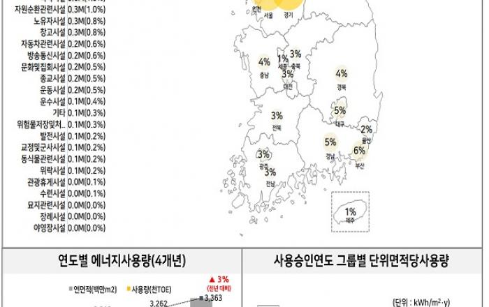 최근에 지어진 아파트가 40년 전 준공한 아파트보다 난방 등 에너지를 23% 가량 절약하는 것으로 나타났다.이는 에너지 허가기준 강화, 노후건축물에 대한 그린리모델링 추진 등으로 건축물의 에너지 효율이 높아졌기 때문으로 풀이된다.국토교통부는 지난해 기준 전체 건축물 에