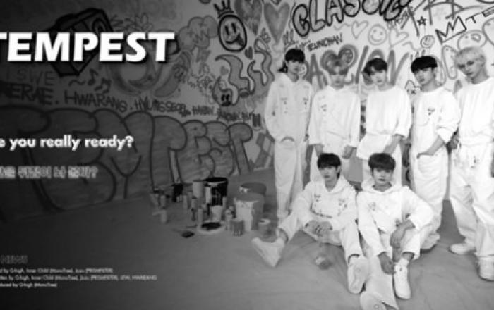 7인조 신예 템페스트(TEMPEST)가 데뷔 앨범을 깜짝 스포일러했다.템페스트(한빈, 형섭, 혁, 은찬, 루, 화랑, 태래)는 22일 0시 공식 SNS를 통해 데뷔 앨범 'It's ME, It's WE(이츠 미, 이츠 위)'의 리릭 무빙 포스터를 공개했다. 흑백의 리릭