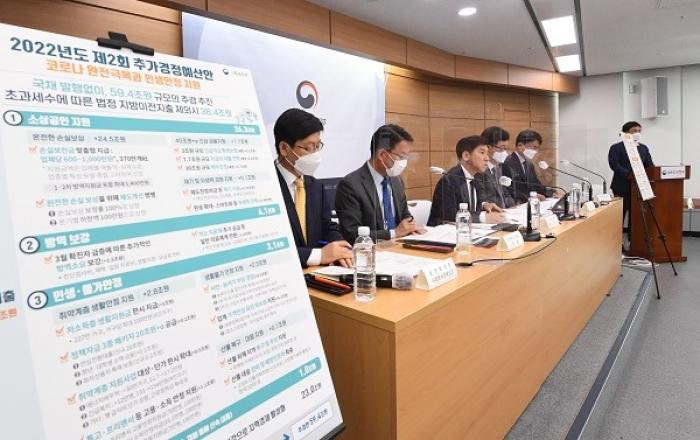 정부가 59조4000억원 규모로 편성된 2차 추가경정예산안을 추가 국채 발행없이 마련하기로 했다. 추경호 부총리 겸 기획재정부 장관은 12일 정부서울청사에서 2022년도 제2회 추경안 관계부처 합동브리핑을 열고 “이번 추경은 추가 국채발행 없이 마련하기 때문에 금리나