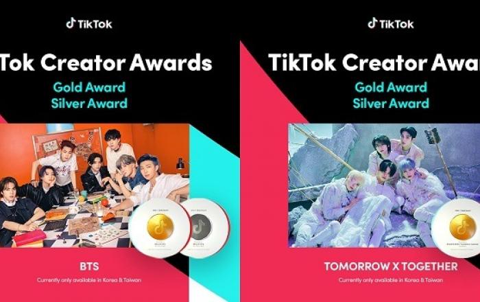 ‘빅히트 뮤직’ 소속 방탄소년단과 투모로우바이투게더가 틱톡에서 1,000만 팔로워를 달성, 나란히 ‘골드 어워드’를 수상했다.방탄소년단(RM, 진, 슈가, 제이홉, 지민, 뷔, 정국)과 투모로우바이투게더(수빈, 연준, 범규, 태현, 휴닝카이)는 글로벌 숏폼 모바일 비디