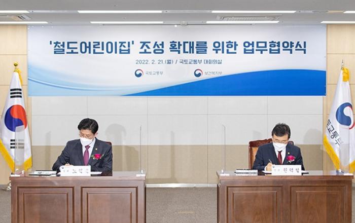 올해 하반기부터 내년까지 철도역사 내 유휴공간에 국공립 어린이집 총 10개소가 조성된다.국토교통부와 보건복지부는 21일 정부세종청사에서 직장인 부모의 보육부담 완화와 저출산 문제를 해소하기 위해 철도역사 유휴공간을 활용한 철도어린이집 조성 확대 추진 업무협약(