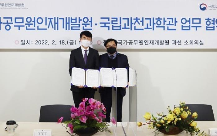 앞으로 국가 인재개발에 국내 과학기술 분야 우수 연구성과가 활용된다.국가공무원인재개발원과 국립과천과학관은 18일 국가인재원 과천분원에서 ‘우수 연구성과 상호 활용을 위한 양해각서(MOU)’를 체결했다고 밝혔다.▲ 최창원 국가공무원인재개발원장(왼쪽)과 이정모 국