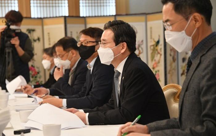 김용범 기획재정부 1차관은 29일 “오는 3월 스마트그린 산단을 최대 3개 선정하고 예산 6820억원을 투입해 사업에 속도를 낼 예정”이라고 밝혔다. 김 차관은 29일 서울 광화문 정부서울청사에서 ‘혁신성장 전략점검회의 겸 정책점검회의 겸 한국판 뉴딜 점검 T