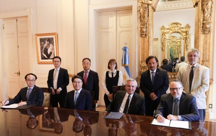 최정우 포스코그룹 회장이 21일(현지시간) 아르헨티나의 수도 부에노스아이레스에 위치한 대통령궁에서 페르난데스(Alberto Angel Fernandez) 대통령, 연방정부 쿨파스(Matias Kulfas) 생산부 장관, 아빌라(Fernanda Avila) 광업 차관 등