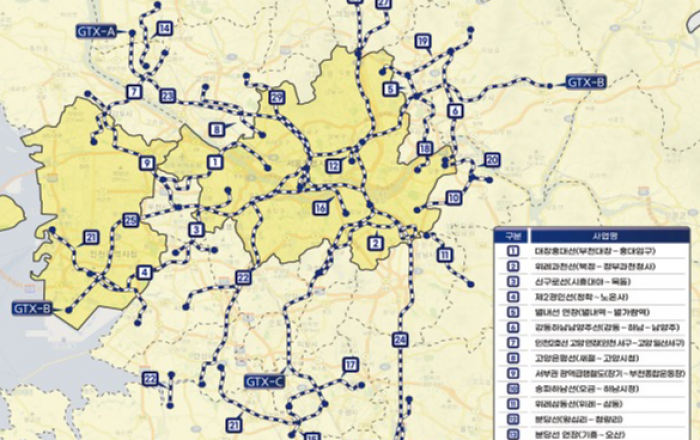 대도시권의 교통망 개선을 위해 2025년까지 5개 대도시권에 광역철도 41개, 광역도로 25개, 광역 간선급행버스(BRT) 12개, 환승센터 44개 등 광역교통시설 총 122개가 확충된다.이를 통해 행주대로∼당산역을 잇는 올림픽대로 광역BRT(서부BTX), 수석 나들목