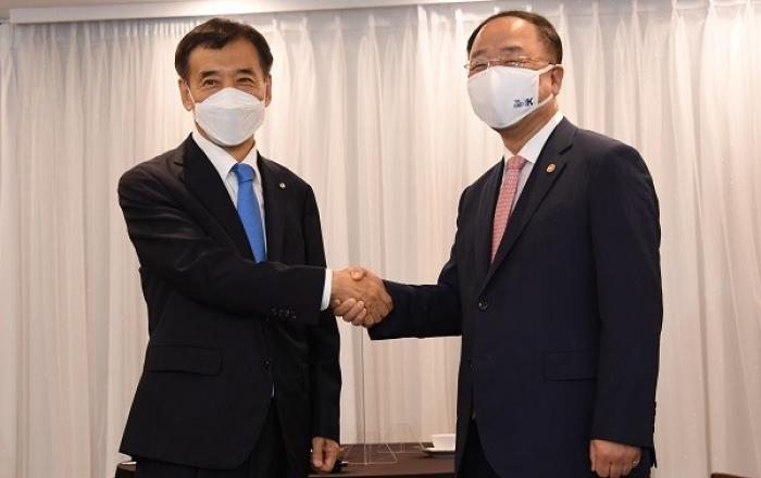 홍남기 경제부총리와 이주열 한국은행 총재는 재정·통화정책은 경제상황과 역할에 따라 상호 보완적으로 운용되는 것이 바람직하다는데 뜻을 같이했다.기획재정부는 2일 홍남기 경제부총리와 이주열 한국은행 총재가 이날 서울 프레스센터에서 조찬을 겸한 회동을 해 현 경제상황에 대한