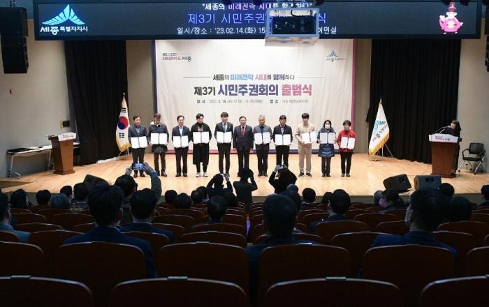 세종특별자치시가 시민들과의 소통으로 올해 시정 운영 방향을 설정하고, 시정4기 주요 정책에 대한 시민 의견을 듣기 위해 ‘제3기 시민주권회의’를 출범한다. 시는 14일 시청 여민실에서 최민호 시장을 비롯한 시민위원, 전문가, 시 관계자 등 160여 명이