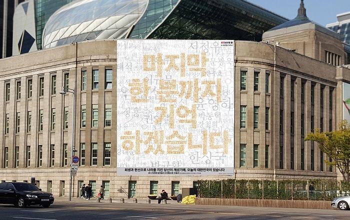 서울시는 2021년 ‘6.25전쟁 71주년’을 맞아 서울도서관 서편 외벽에 ‘마지막 한 분까지 기억하겠습니다’ 라는 메시지가 담긴 대형 현수막을 6월 24일(목) 새롭게 내건다.광화문 방향 세종대로에서 한 눈에 보이는 이번 대형 현수막에는 6.25 참전 용사 및 서해수