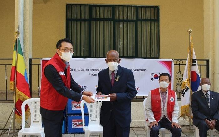 LG전자가 에티오피아 참전용사에게 희망을 전했다.LG전자는 현지시간 23일 에티오피아의 수도 아디스아바바에 위치한 에티오피아 한국전 참전용사협회에서 생존 참전용사 100여 명에게 생활지원금, 손소독제 등을 전달했다. 참전용사와 가족이 코로나를 이겨내는 데 조금이나마 보