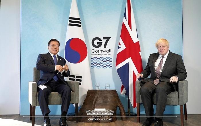 영국 콘월에서 열리는 주요 7개국(G7) 정상회의에 참석 중인 문재인 대통령은 13일(현지시간) 의장국인 영국의 보리스 존슨 총리와 정상회담을 갖고, 양국 간 현안을 비롯해 글로벌 과제들에 대해 다양한 의견을 교환했다.문 대통령은 “존슨 총리의 결단으로 영국은 세계에서