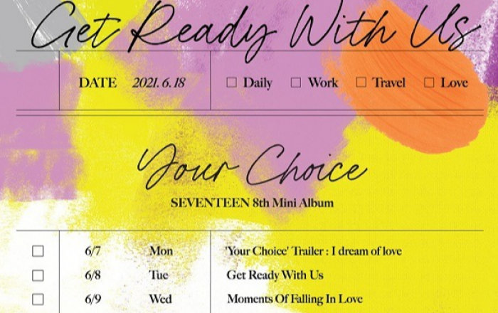 그룹 세븐틴(에스쿱스, 정한, 조슈아, 준, 호시, 원우, 우지, 디에잇, 민규, 도겸, 승관, 버논, 디노)이 컴백 초읽기에 돌입했다.세븐틴은 오는 18일 미니 8집 ‘Your Choice’ 발매를 앞둔 가운데, 오늘(8일) 0시 공식 SNS를 통해 ‘Your Cho
