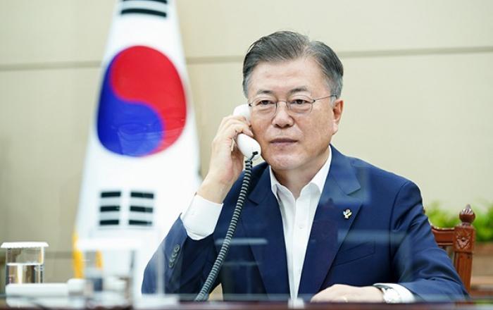 문재인 대통령은 3일 오후 5시 15분부터 30분간 보리스 존슨 영국 총리와 전화 통화를 갖고 서울 P4G 정상회의(5월 30~31일)와 G7 정상회의(이달 11~13일, 영국 콘월) 및 양국 간 현안과 상호 관심사에 대해 의견을 교환했다고 박경미 청와대 대변인이 서면