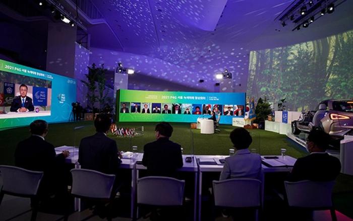 문재인 대통령은 ‘2021 P4G 서울 녹색미래 정상회의’ 이틀째인 31일 밤 10시부터 ‘포용적인 녹색회복을 통한 탄소중립 비전 실현’을 주제로 실시간 정상 토론세션을 주재했다.문 대통령의 회의 개시로 시작된 정상 토론세션은 기조발제, 15개 세션(기본·특별세션) 결