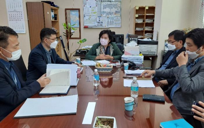 ▲ 인천시의회 박정숙의원 사무실에서 해상교통관제시설 영종도 설치 문제를 협의 중인 장면인천광역시가 월미도에 국립인천해양박물관을 설립하는 과정에서 인천항 지역 해상교통 관제 시설(VTS)을 영종도에 설치하는 방안이 검토되고 있어 영종도 지역 시민들의 반대 여론이 비등한