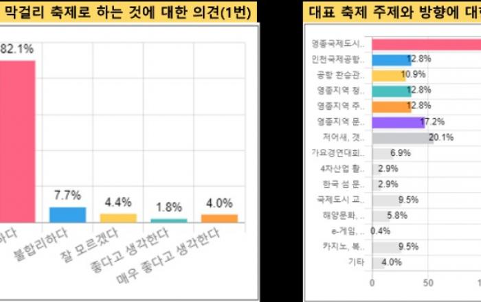 인천경제자유구역청(IFEZ)이 2021년도 경제자유구역사업 특별회계 예산서에 공기관 등 경상적 대행사업비로 편성한 영종대표축제 예산(2억 5천만원)을 ‘막걸리축제’를 주제로 정하여 집행할 계획이라는 사실이 알려져 이에 대해 영종국제도시 시민들이 자체적으로 설문조사를 실