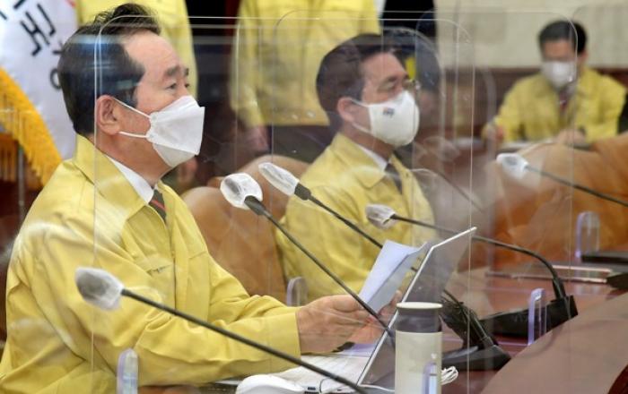 정세균 국무총리는 16일 마지막 코로나19 중앙재난안전대책본부(중대본) 회의를 주재하고 “‘코로나’는 결코 ‘코리아’를 이길 수 없다”며 위기극복 의지를 강조했다. 정 총리는 이날 서울 세종로 정부서울청사에서 열린 중대본 회의에서 “정부는