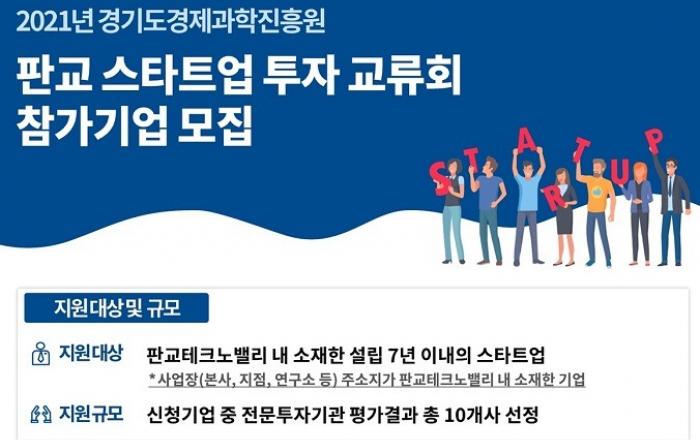 경기도가 새싹기업(스타트업)의 투자유치 발판을 마련하기 위한 ‘투자 교류회’를 열기로 하고 1차 참여 기업 10개사를 오는 30일까지 모집한다.이번 투자 교류회는 판교테크노밸리 내 우수 새싹기업과 투자자 간 투자상담회와 교류를 통해 새싹기업의 투자처 발굴을 지원하기 위