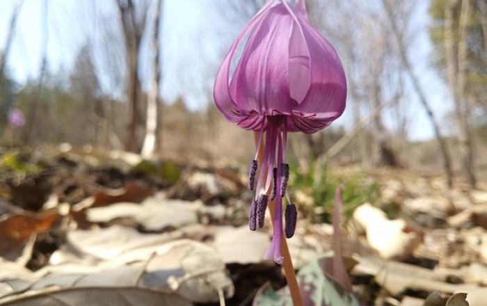 산림청 국립수목원 전시원에는 봄에만 잠깐 땅 위로 올라오는 얼레지가 꽃을 피우고 있다.겨울잠에서 깨어난 보랏빛의 얼레지·미치광이풀·현호색, 하얀빛의 산자고·꿩의바람꽃, 그리고 노란빛의 중의무릇 등이 아주 잠깐 우리에게 얼굴을 보여주는 지금 국립수목원은 완연한 봄날을 느
