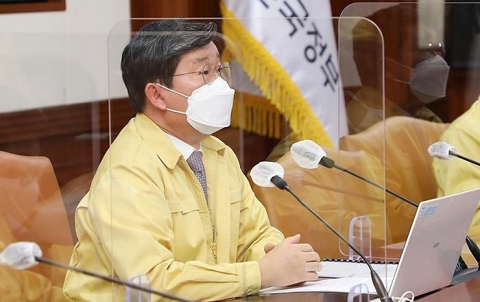 전해철 중앙재난안전대책본부 제2차장(행정안전부 장관)은 15일 “오늘 확진자 수는 600명대 후반으로 예상되는데, 여전히 600~700명대를 이어가고 있어 우려스러운 상황”이라고 말했다. 이날 코로나19 대응 중앙재난안전대책본부 회의를 주재한 전 2차장은 “코