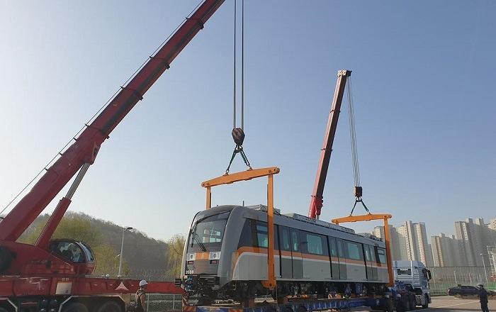 인천교통공사는 인천도시철도 2호선 혼잡도 개선을 위해 2018년 8월 전동차 전문 제작사(우진산전)와 계약한 전동차 6대(12칸) 중 최초 편성 2칸을 30일 운연차량기지에 반입했다고 밝혔다.2호선 증차사업은 열차 운행시격을 단축함으로써 출퇴근 시간대 혼잡으로 인한 이