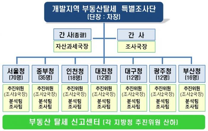 전국 대규모 개발지역의 이상 토지거래 내역에 대한 전수 검증이 실시된다.이를 위해 국세청 내에 ‘개발지역 부동산탈세 특별조사단’이 구성된다. 아울러 특별조사단에 범국민 참여형 ‘부동산탈세 신고센터’를 설치, 국민들의 부동산 거래 관련 탈세제보도 접수받