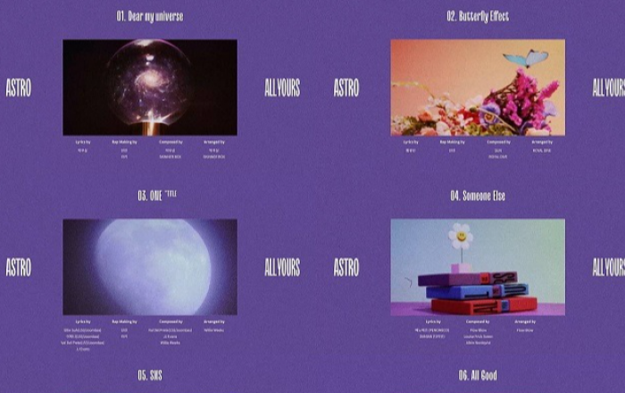 글로벌 보이그룹 아스트로(ASTRO)가 다채로운 음악색을 선보인다.29일 자정 아스트로(MJ, 진진, 차은우, 문빈, 라키, 윤산하) 공식 SNS 채널을 통해 아스트로의 두 번째 정규앨범 ‘All Yours’(올 유어스)의 하이라이트 메들리 영상이 공개됐다.공개된 영상
