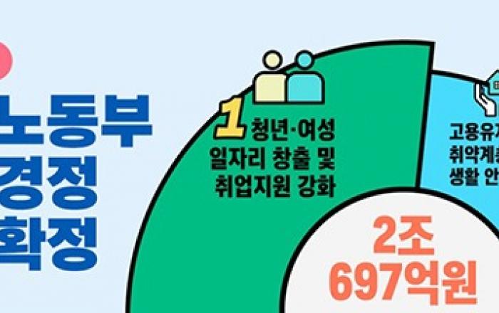 고용노동부는 25일 국회 본회의에서 2021년도 고용노동부 소관 추가경정예산이 총 지출 규모 2조 697억원으로 의결됐다고 밝혔다.이는 국회 심의과정에서 집행 가능성 등을 고려해 당초 정부안이었던 2조 2076억원 보다 1379억원이 감액된 예산으로, 이를 통해 일자리