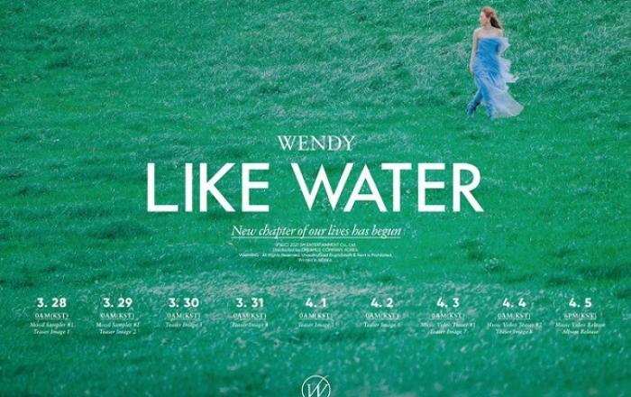 레드벨벳 웬디의 첫 솔로 앨범 ‘Like Water’(라이크 워터) 스케줄 포스터가 공개되어 화제다.26일 0시 각종 SNS 레드벨벳 계정을 통해 공개된 스케줄 포스터에는 아름다운 풍경 속 웬디 모습과 다채로운 콘텐츠 오픈 일정이 담겨 있어 앨범에 대한 기대감을 증폭시