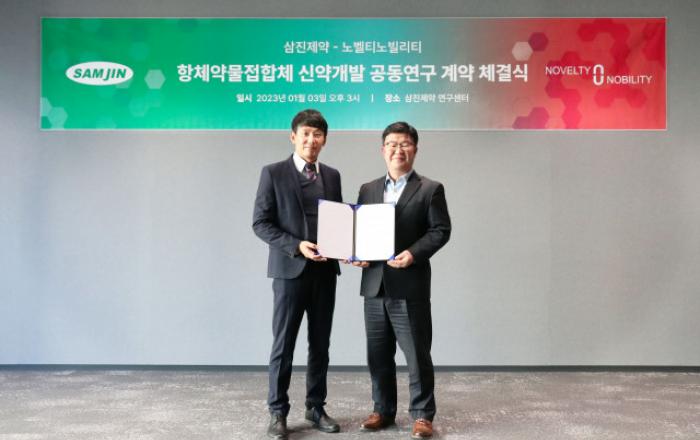 삼진제약이 항체 신약 개발 전문 기업 ‘노벨티노빌리티’와 ‘항체-약물접합체(Antibody-drug conjugates, ADC)’ 신약 개발을 위한 공동연구 협약을 체결했다고 밝혔다.이번 협약을 통해 삼진제약은 ADC에 사용할 새로운 기전의 ‘페이로드(Payload,