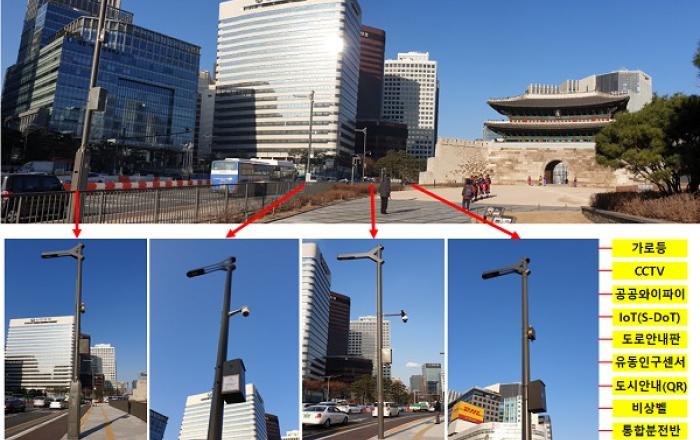서울시가 서울광장, 숭례문, 청계천변 일대 등 6곳에 26개의 ‘스마트폴’을 구축했다. 도로 곳곳에 복잡하게 설치돼 있는 가로등·신호등 같은 도로시설물을 하나로 통합하고, 공공 와이파이, 지능형 CCTV 같은 ICT 기술을 결합시킨 스마트도시 핵심 인프라다.‘서울시 스