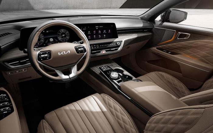 기아 K8은 1등석(First Class) 공항 라운지에서 영감을 받아 편안함과 고급스러움이 느껴지는 실내 공간을 갖췄다.가장 인상적인 것은 기아가 K8에 처음 적용한 ‘파노라믹 커브드 디스플레이(Panoramic Curved Display)’다.12.3인치 커브드 디