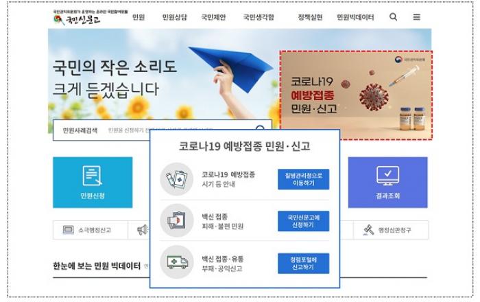 코로나19 예방접종과 관련해 접종대상, 일정 등 궁금한 사항이나 불편 및 개선요청 사항이 있다면 국민권익위원회가 운영하는 온라인 국민참여포털인 ‘국민신문고’를 통해 도움을 받을 수 있다.국민권익위원회는 지난달 26일 국민신문고 누리집(www.epeople.go.kr)에