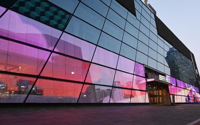 LG전자가 올해로 개관 10주년을 맞은 부산 영화의전당 건물에 투명 LED 필름으로 대형 미디어아트를 구현했다. LG전자는 부산 해운대구 소재 영화의전당 건물 유리벽에 가로 약 45미터, 세로 약 4.5미터 규모로 투명 LED 필름을 설치했다. 총 설치 면적은 206제