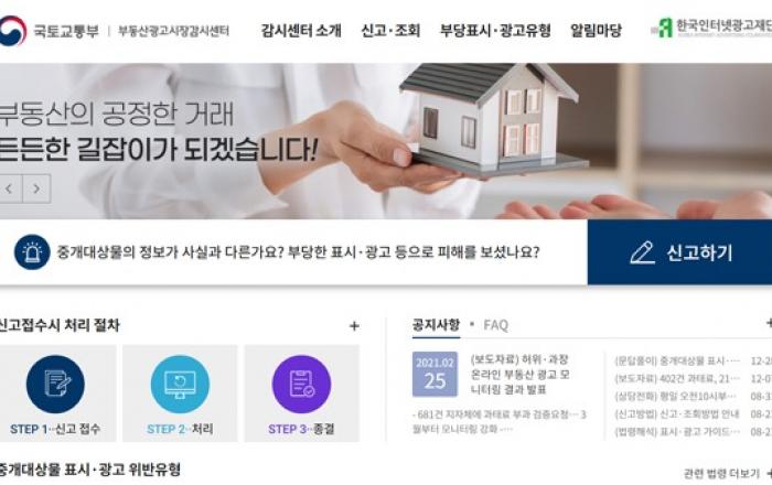 온라인을 통한 부동산 광고 모니터링 결과 명시의무 위반, 허위·과장 광고, 무자격자 광고 등 681건의 의심사례가 발견됐다. 국토교통부는 이에 대해 지자체에 과태료 부과를 요청할 방침이다.국토부는 이 같은 내용의 허위·과장 부동산 광고로 인한 소비자 피해를 줄이기 위해
