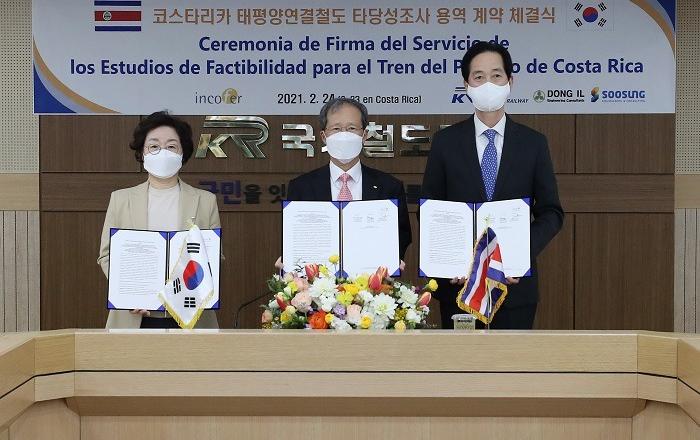 국가철도공단은 코스타리카 철도청(INCOFER)이 발주한 「태평양연결철도 타당성 조사용역」사업에 대한 계약을 체결하였다고 24일(수) 밝혔다.이번 계약은 전통적으로 중남미 철도시장을 점유했던 스페인 등 유럽국가와의 경쟁속에서 공단이 수주하였다는 점에서 의미가 크며, 공